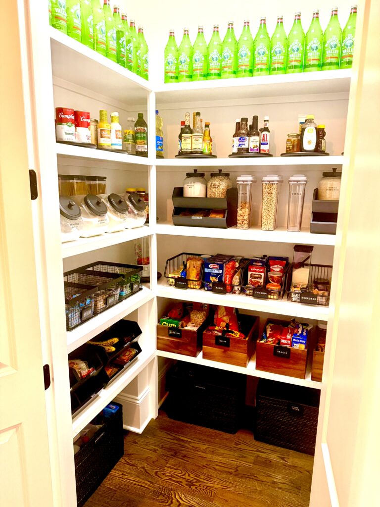 It creates a clean, uniform look while also making better use of vertical space. When everything is contained and consistent, the pantry feels easier to navigate and maintain.